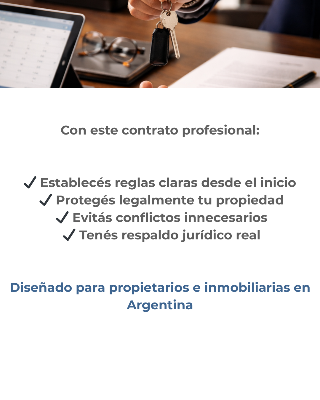 No. Además del contrato accedés a un sistema de documentación para alquilar con orden y respaldo, que reducen conflictos y reclamos.